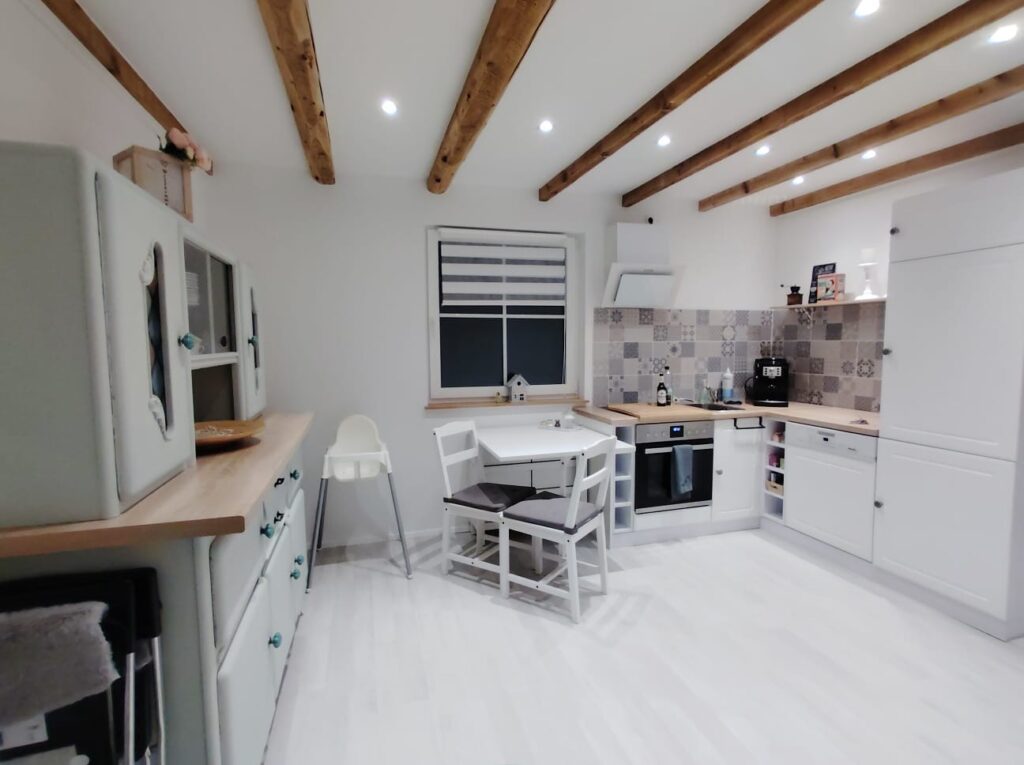 2022 kauften wir, Familie Petran, das Haus und sanierten es seitdem umfangreich. Das Haus wurde komplett entkernt und diverse Wanddurchbrüche machten aus zwei Doppelhaushälften ein kleines Raumwunder. Denn was von außen noch klein wirkt, entpuppt sich im inneren als sehr geräumig.